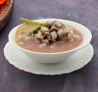 | Ingredientes | Tomate, cebolla, pepinillo, pescado, pinchagua, pulpo y calamar, cilantro, aguacate |